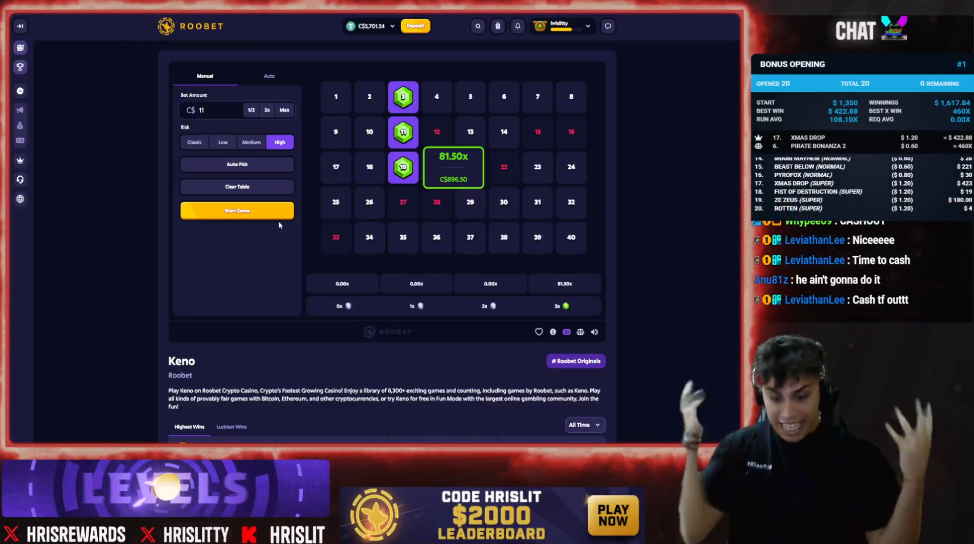 - Roobet Keno Big Wins