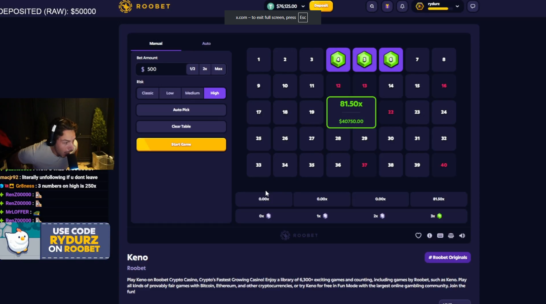 - Rydurz - $500 to $40,750: Ryderz picked his three numbers - 4,5, and 6, and when all three numbers matched those drawn, he was rewarded with 81.50x his bet.