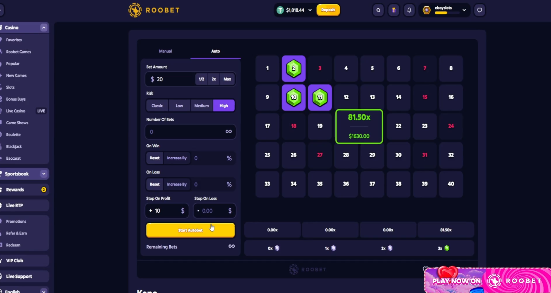 - How to Play Roobet Keno